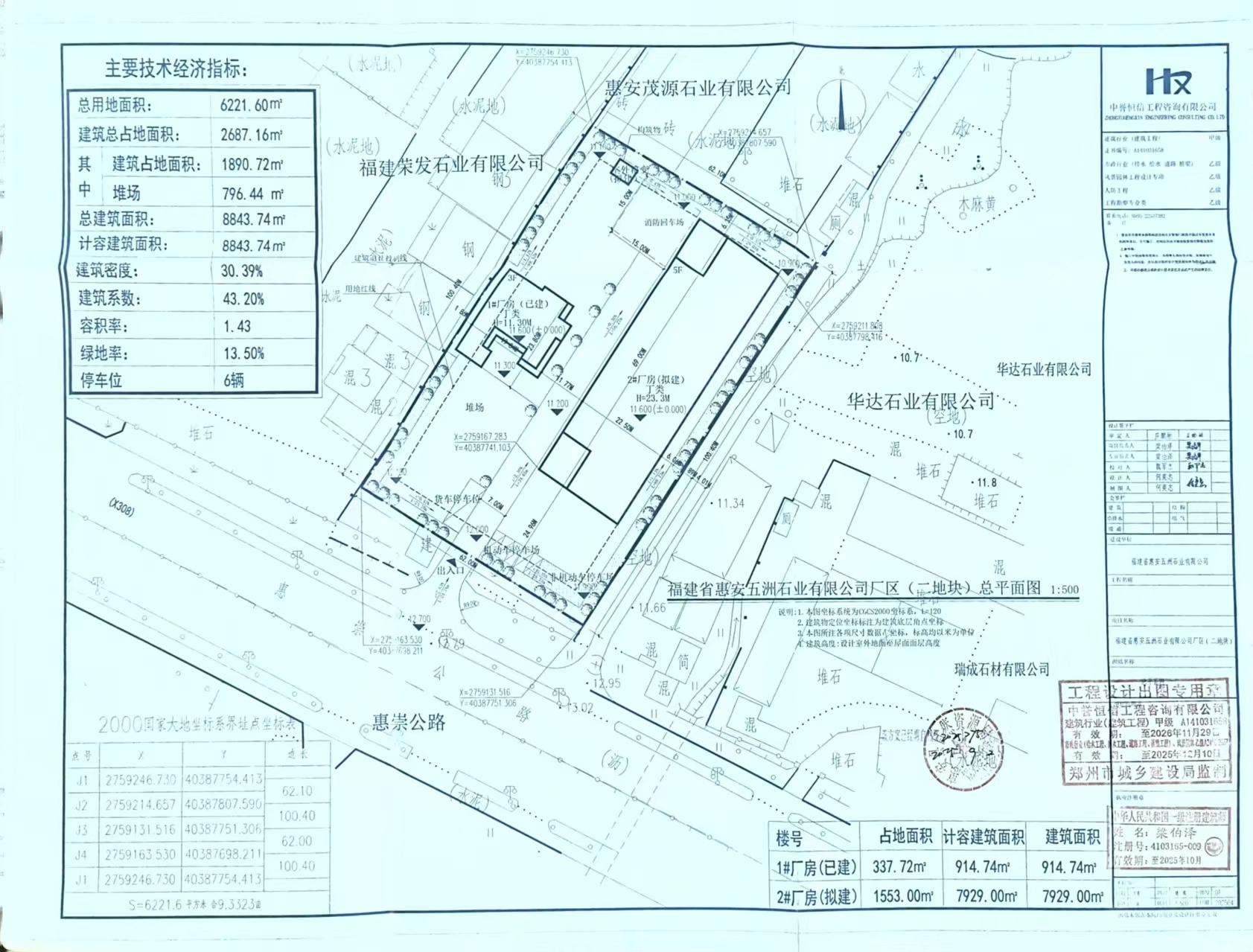 福建省惠安五洲石業(yè)有限公司廠(chǎng)房(二地塊)建設(shè)工程規(guī)劃許可證批前公示